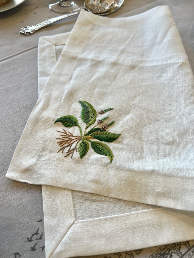 RUHE Collection手刺繍ナプキン(オオバコ)