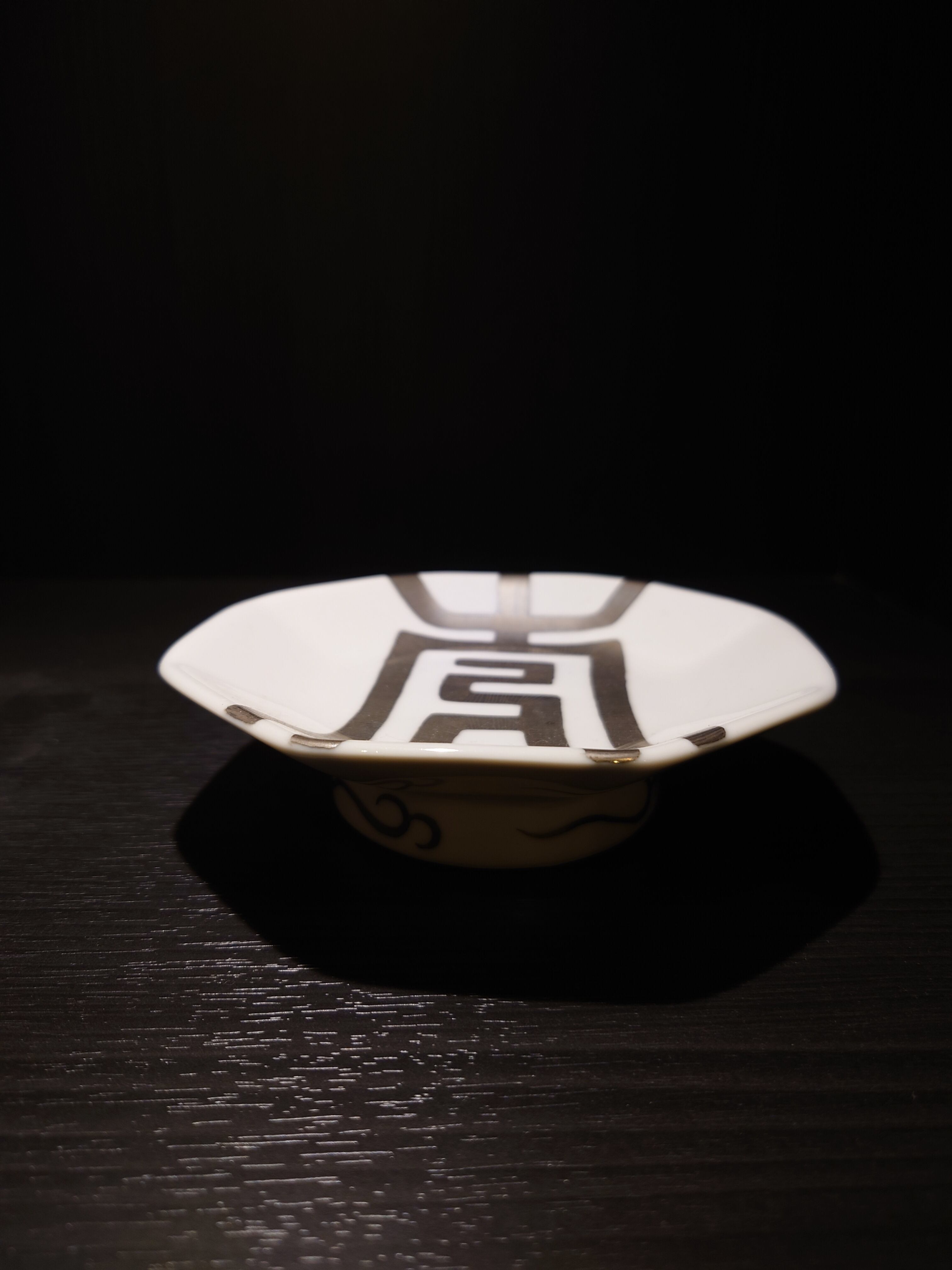 プラチナで描かれた手書き模様が美しい八角皿。和菓子を乗せたり、取り皿としても。空間のアクセントとして飾っても美しい、存在感のある小皿です。