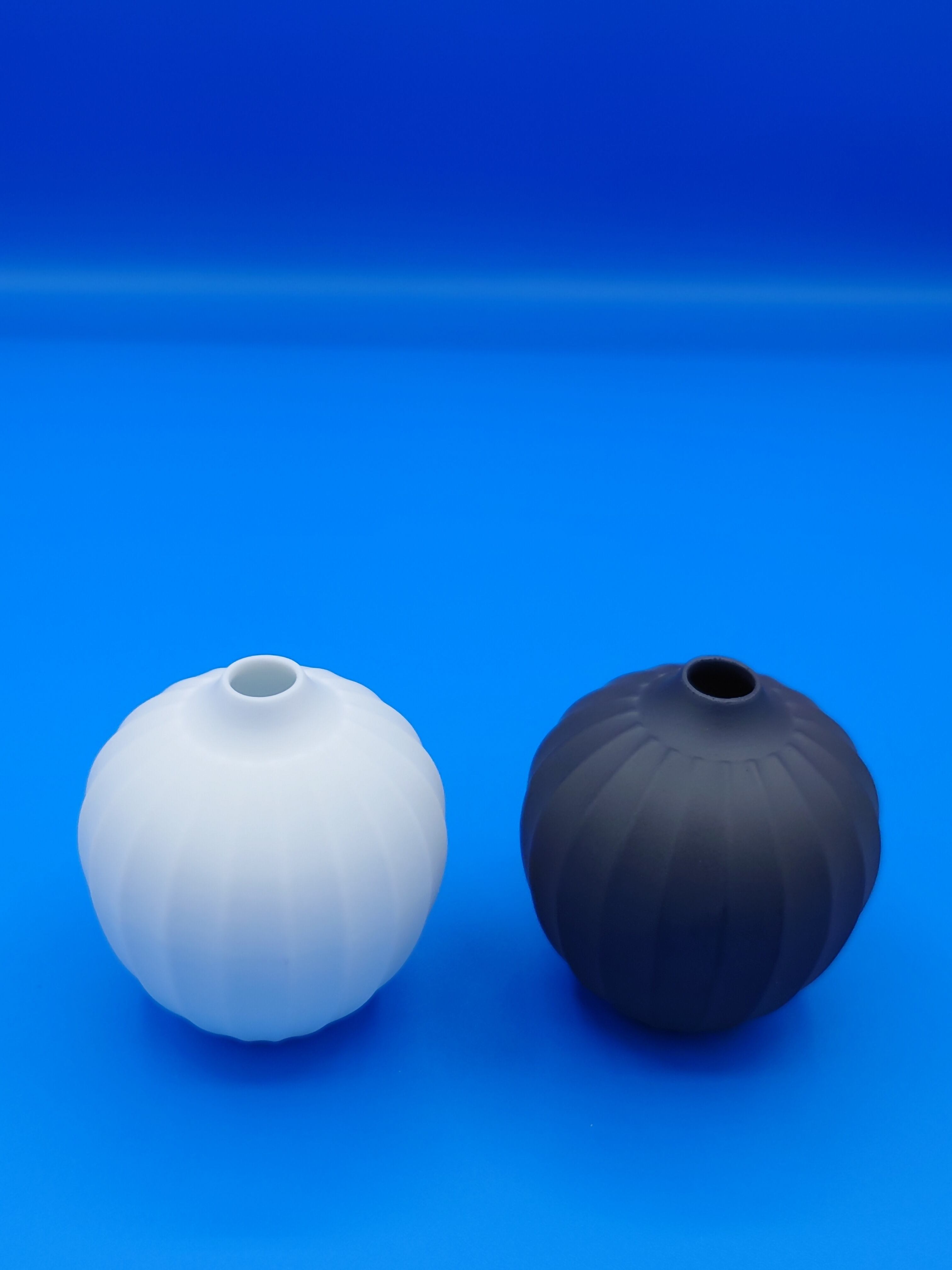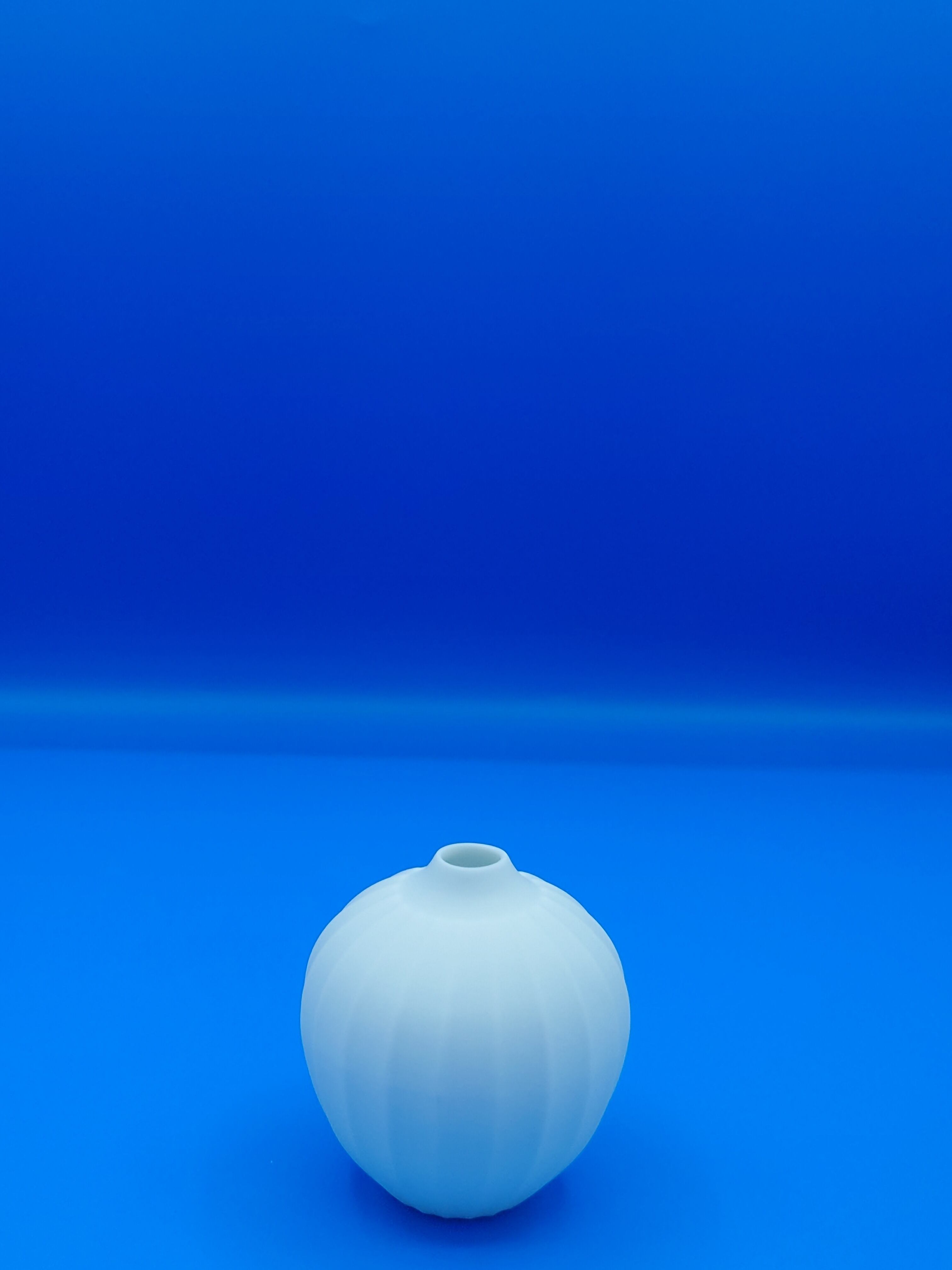 一輪挿し 面取(めんとり)。ミニサイズの一輪挿しです。手のひらに収まる大きさなので、軽くて持ち運びやすく、場所を取りません。面と面の境目をしっかりと出し多面体にすることで、通常の球体よりも立体感が出るようになっています。