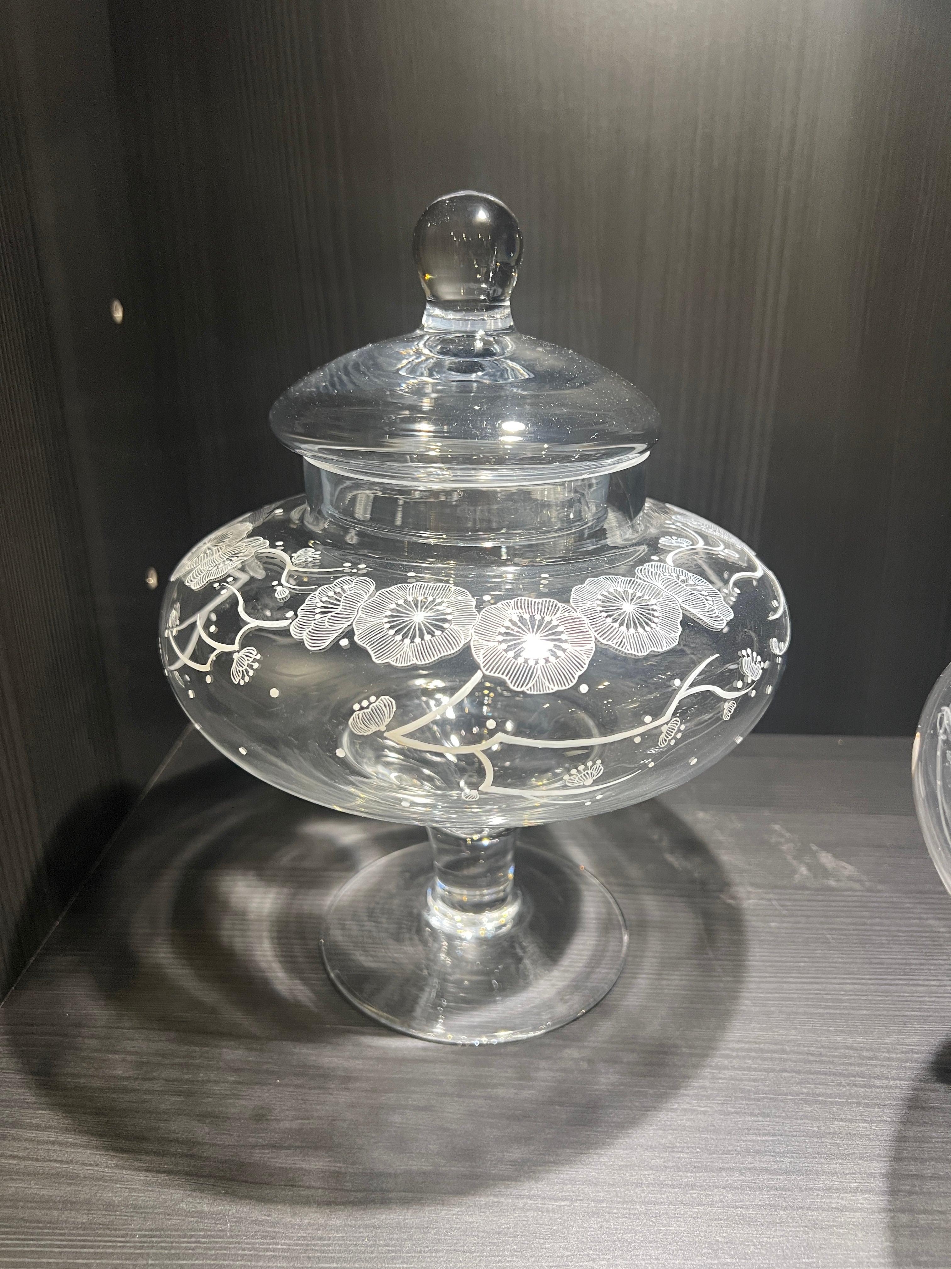 手描き模様が美しい、蓋付ガラスキャニスター。