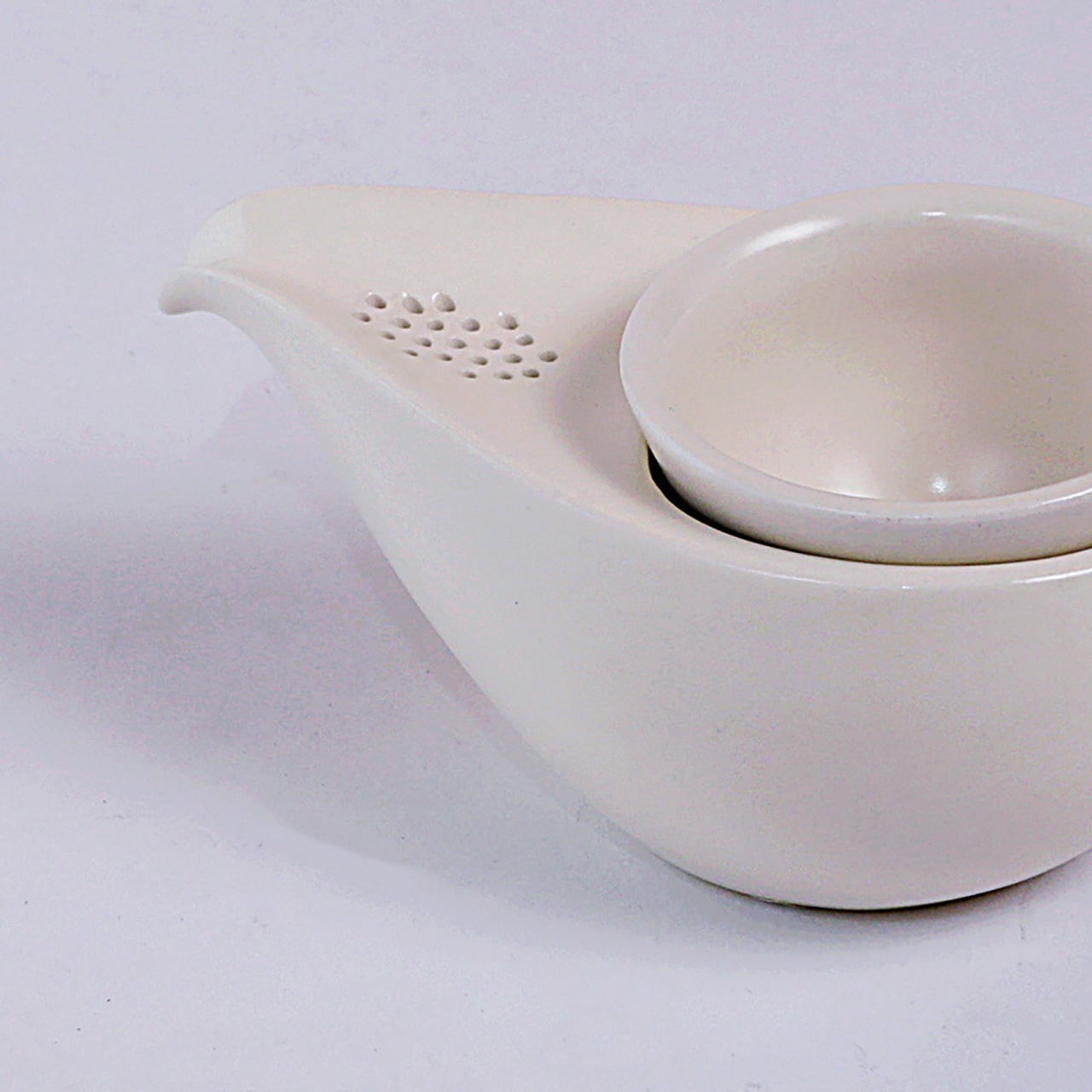 女性の手のひらに入る、しずくの形をした萬古焼きの茶器です。玉露や上煎茶などの低温でいれるお茶に適しています。上質な茶葉の濃厚な旨味を愉しみたい時や優雅なひと時にふさわしい茶器です。