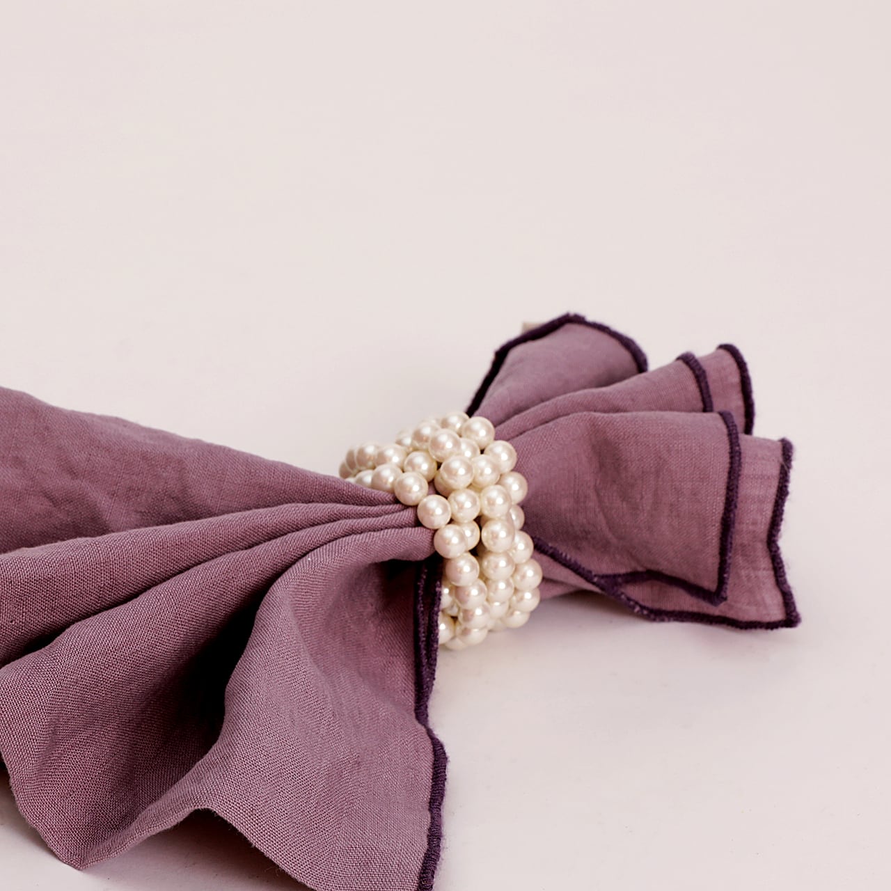 パールビーズのナプキンリングです。ランチやディナーの演出に最適。テーブルコーディネートのアクセントとなり、より一層華やかな印象に。