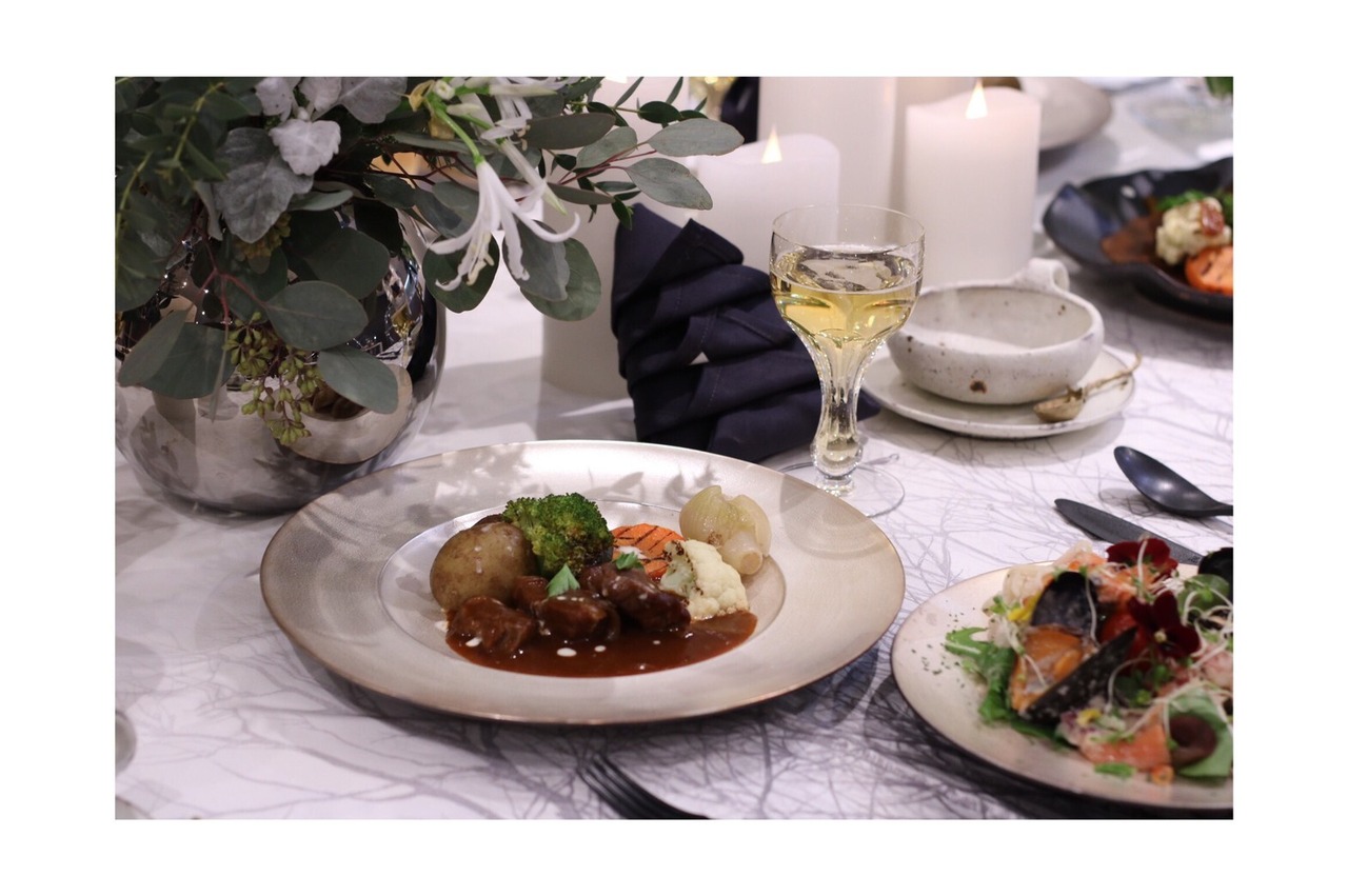 ラーゴとはイタリア語で、「湖」という意味。黒土で仕上げられたリムと内側のコントラストが美しいプレートで、土と水をイメージしてデザインされました。ピント張った水面のような緊張感と静寂さがあり、動きのある料理が器から浮き立つような演出をもたらします。