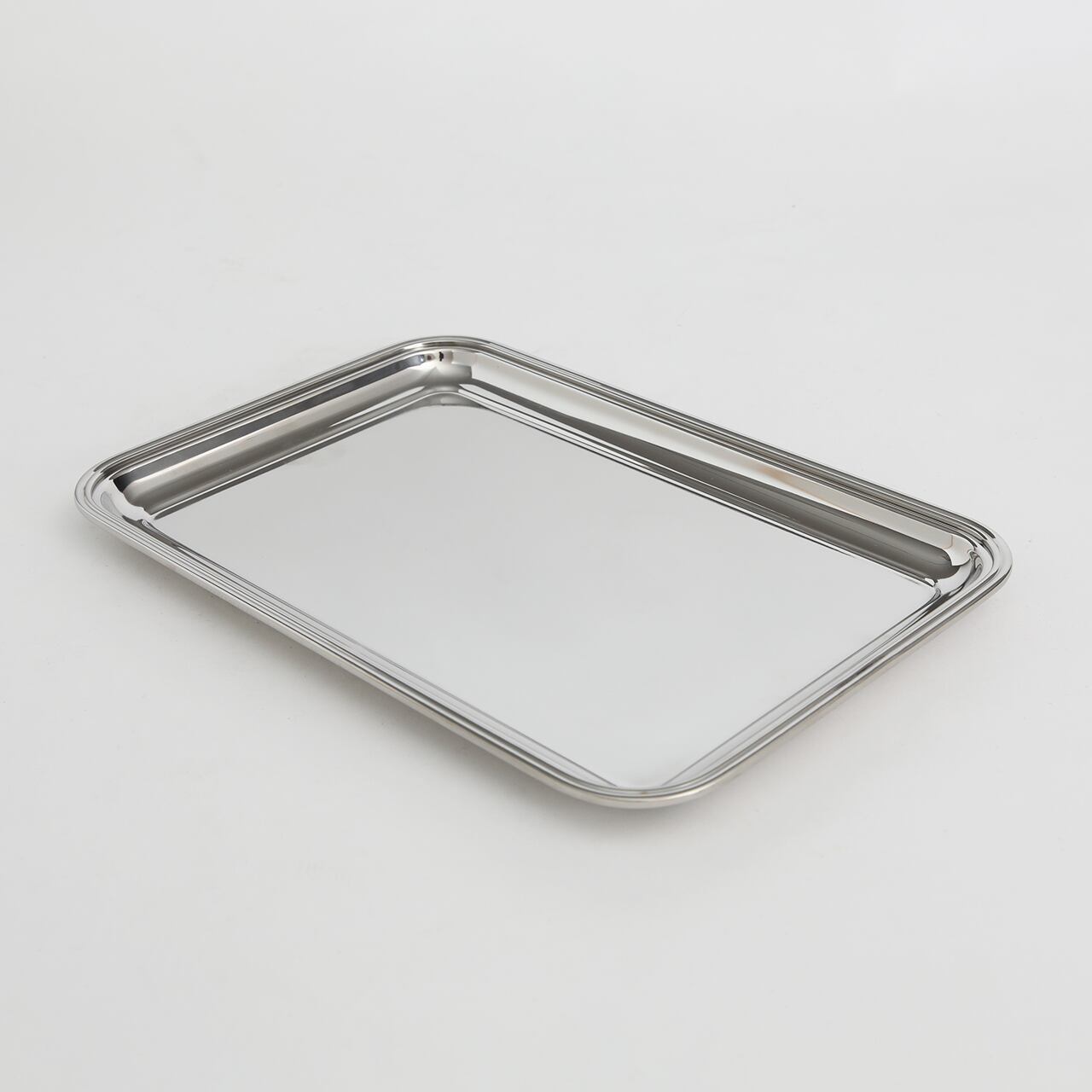 取手無しのシンプルなシルバートレイです。光を反射するシルバートレイなら、ナチュラルテイストのお茶時間とは違ったエレガントなテーブルに。
