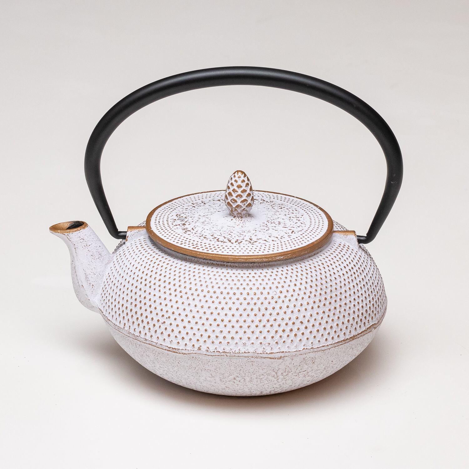 【南部鉄器】急須 アラレ 0.6L(白・ゴールド)