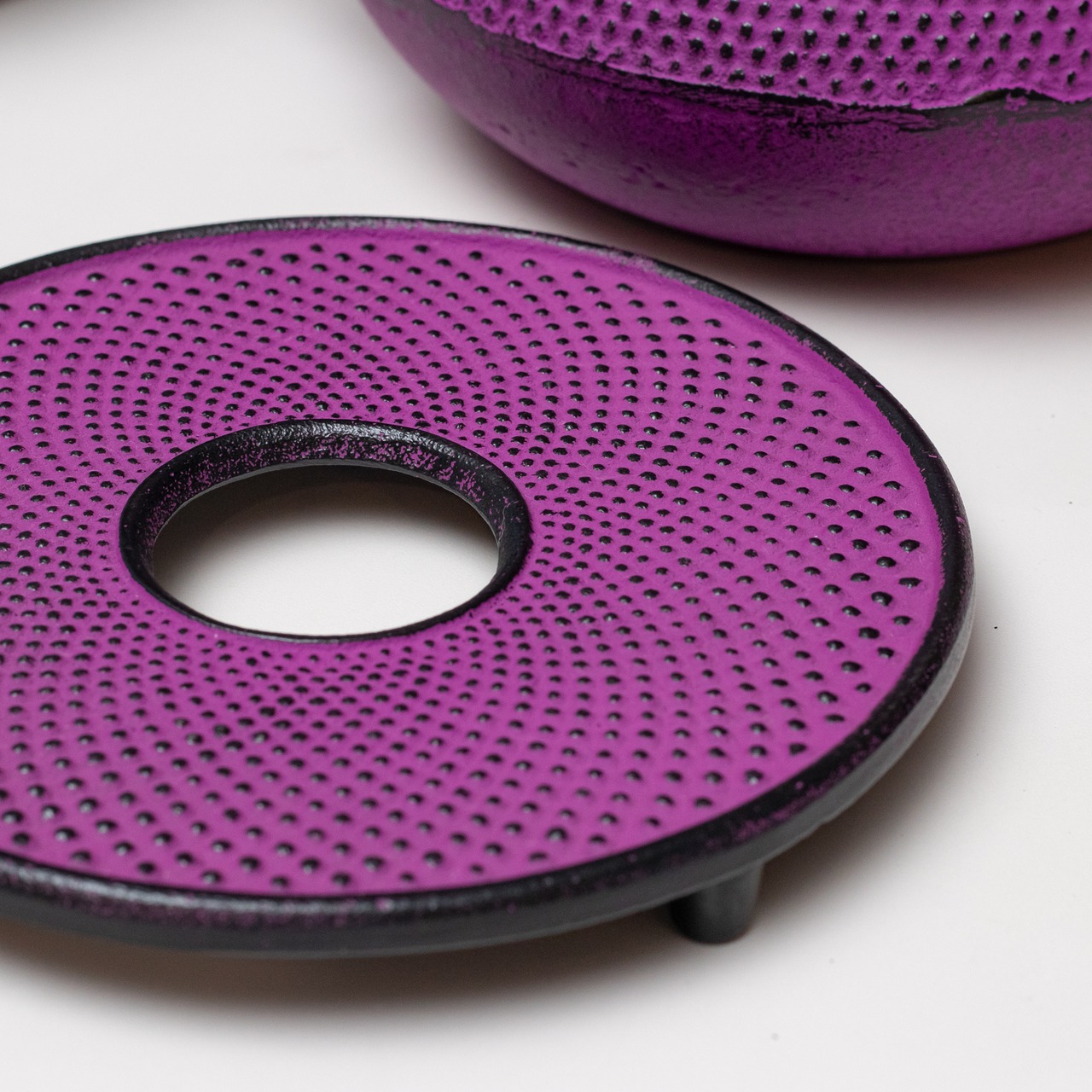 【南部鉄器】釜敷丸 アラレ 大(パープル・黒)