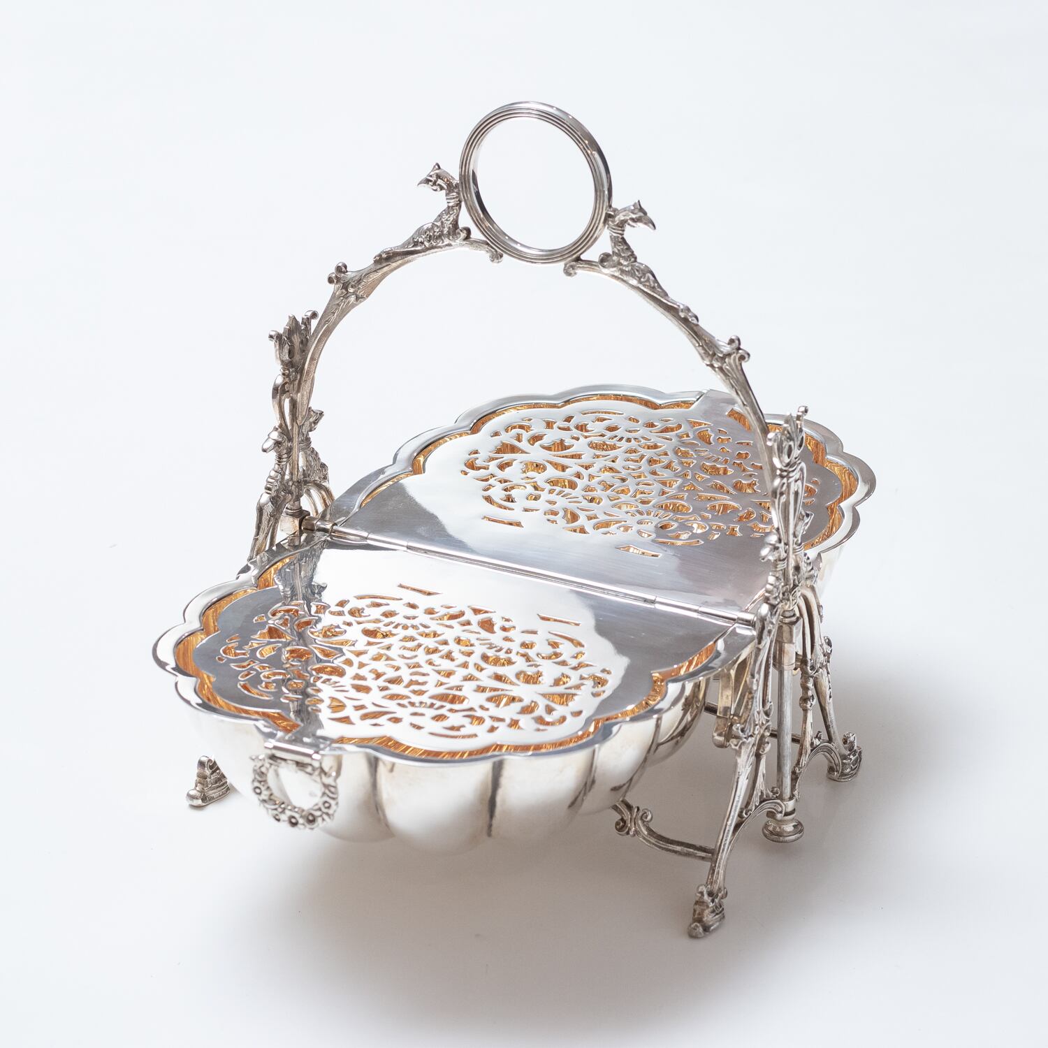 貝殻のような形のボディを枝のような繊細な装飾のフレームと、四つ脚がしっかりと支えています。