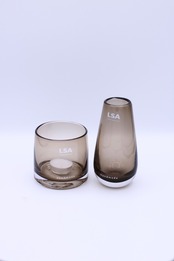 カラーガラスが植物の色を引き立てる小ぶりなフラワーベース。